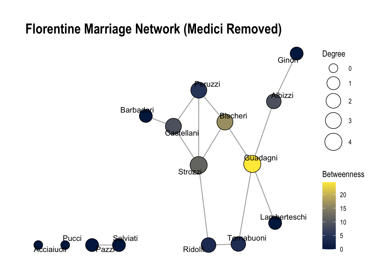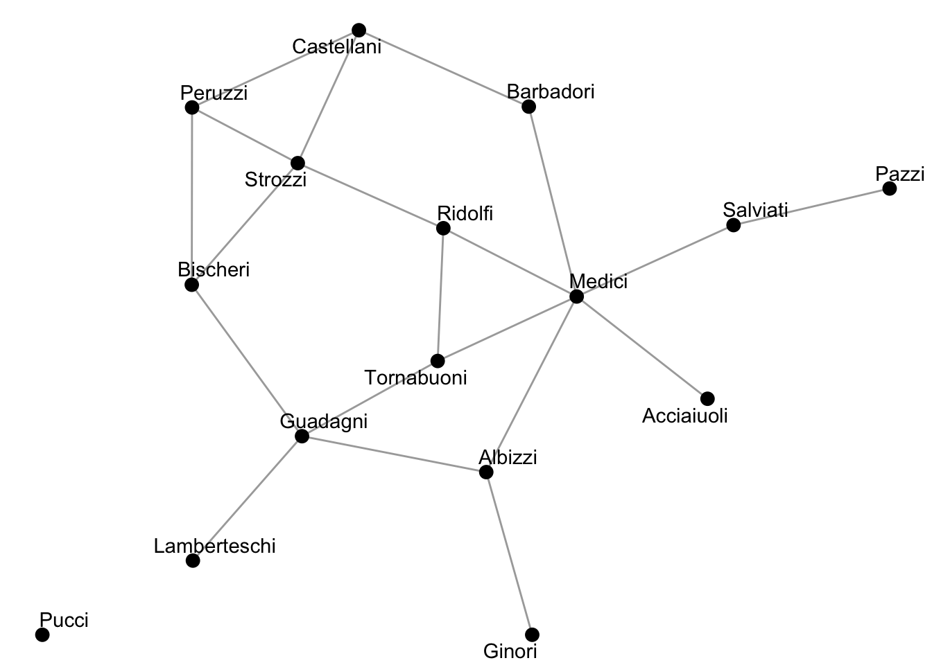 theme_set(theme_bw(base_size = 17))Now we load the Florentine Family Marriage dataset flo_marriage into the current R session with the function data(). This data is from the networkdata package.
